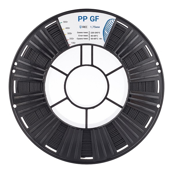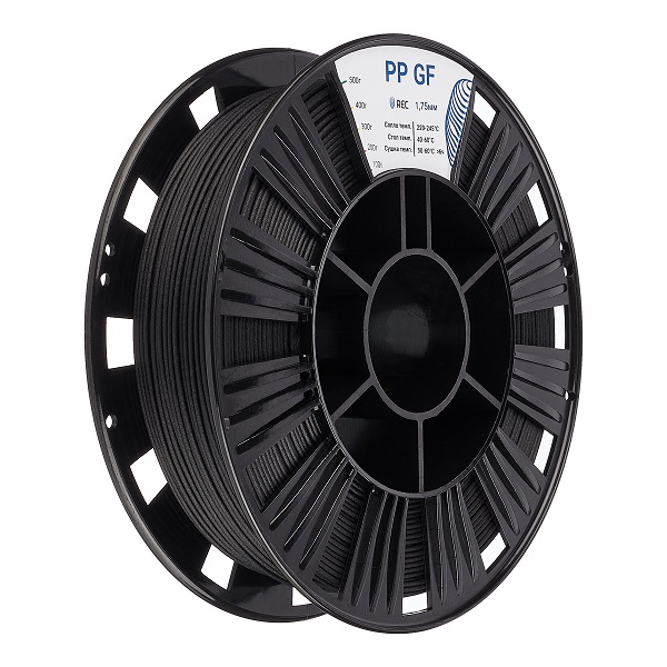 PP GF пластик REC — это полипропиленовый филамент, армированный стекловолокном, для создания прочных и жестких деталей с отличной химической стойкостью. Материал сочетает легкость полипропилена с повышенной прочностью и стабильностью благодаря стекловолоконному наполнению.