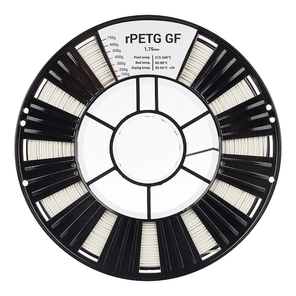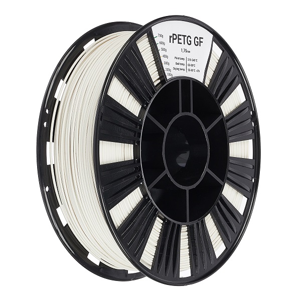 rPETG GF — это экологичный филамент на основе переработанного полиэтилентерефталата гликоля с армированием стекловолокном. Материал сочетает высокие механические свойства с устойчивым подходом к производству, предлагая прочность и жесткость при сниженном воздействии на окружающую среду.