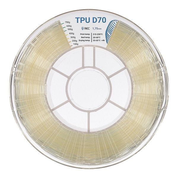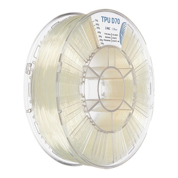 TPU D70 пластик REC — это гибкий полиуретановый филамент средней жесткости, предназначенный для создания эластичных и износостойких деталей. Материал сочетает высокую прочность с хорошей гибкостью, что делает его идеальным для функциональных изделий, подвергающихся постоянной деформации.